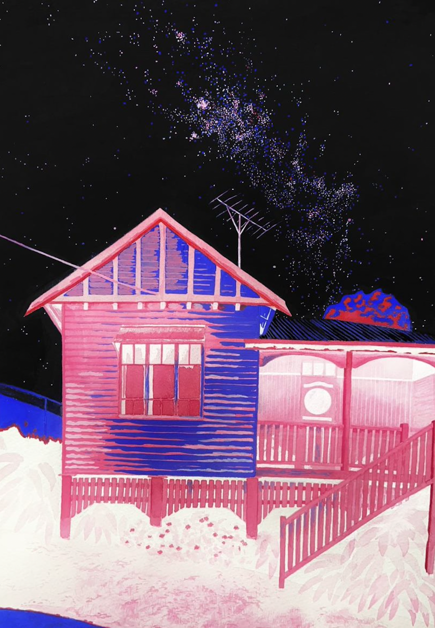 Her practice is focused on the idea of a sense of place, experienced in South-East Queensland. Many of her artworks aim to highlight and evoke the enjoyable qualities of the surrounding Australian environment and our connection to community. Olivia will often use imagery of familiar scenes combined with bright colours to induce the nostalgia associated with these places.